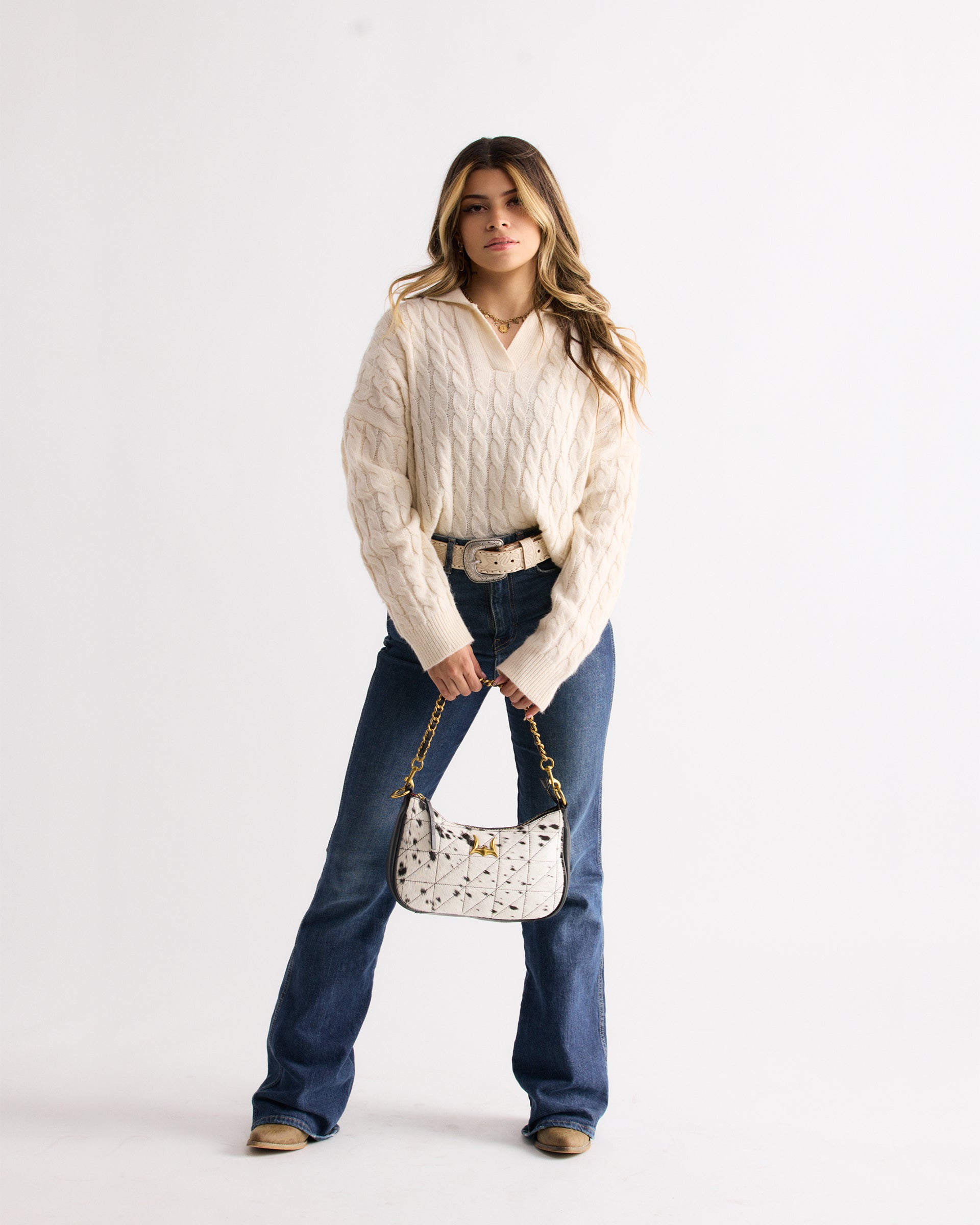 Joe Quilted Nappa Leather Bag - Black & White Cowhide
